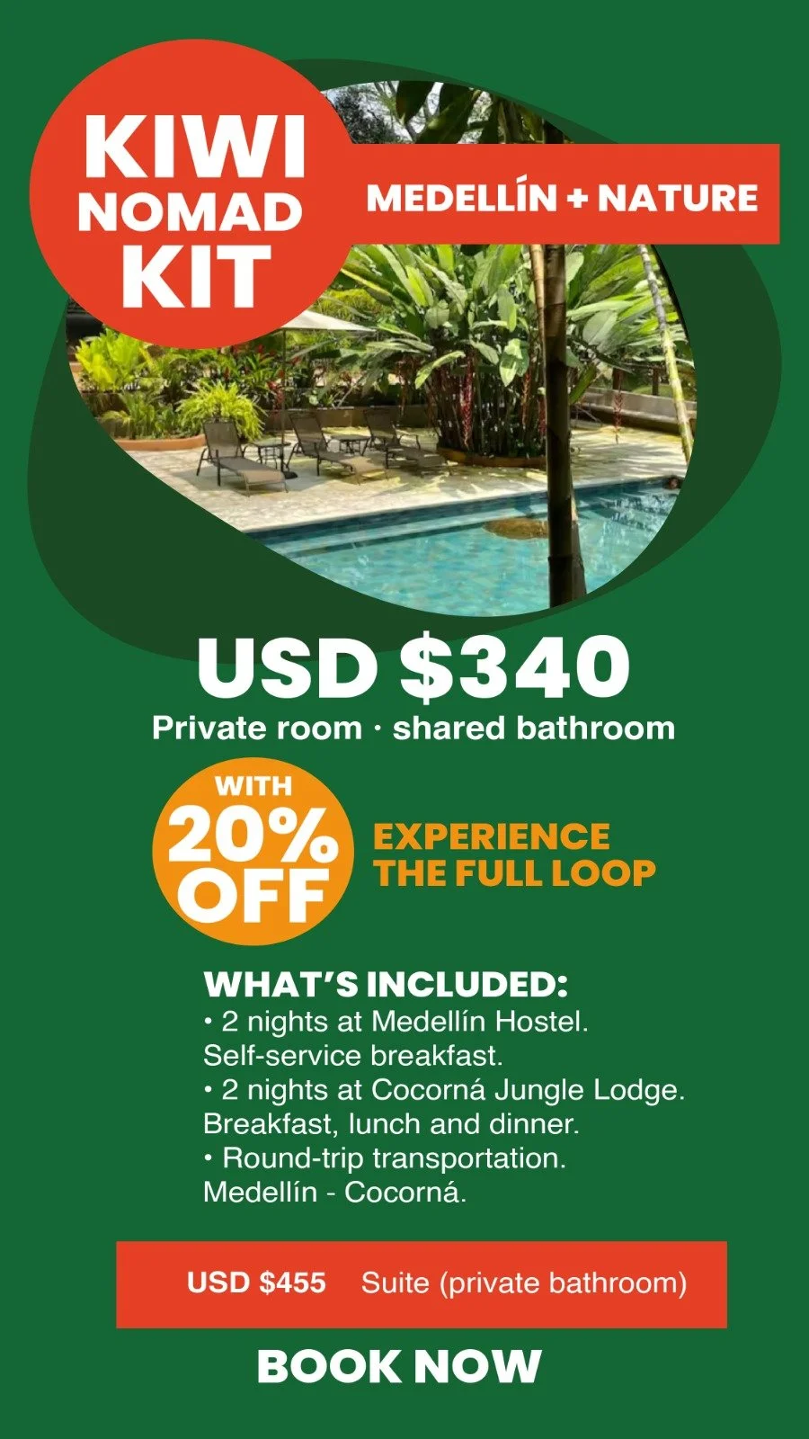 • Round-trip transportation Medellín - Cocorná.USD $455 Suite (private bathroom)